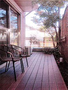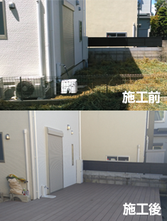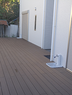 人工木で耐久性のあるウッドデッキ(お客様撮影写真)。
