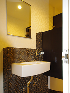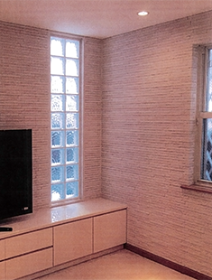 汚れた壁面に石を貼ってリッチな雰囲気に。