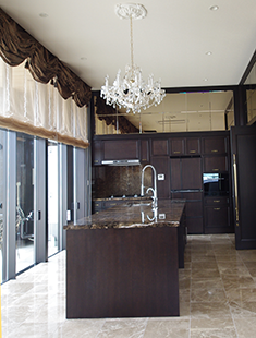 オーダーキッチンターキーを丸焼き出来るオーブン、4人同時に作業が出来るアイランド