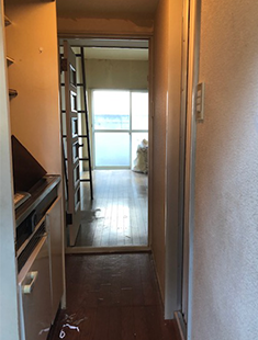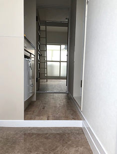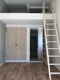 クロス・枠・はしごの色を白で統一してクローゼット・リビングドアもダイノックシートで統一しました。